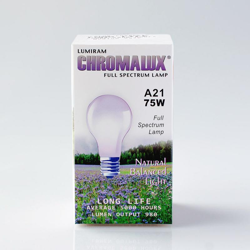 These Chromalux full spectrum bulbs contain neodymium, a rare earth element that filters out the excessive yellow part of the spectrum to which our eyes are most sensitive. As a result, the light is purified, allowing the values of violet, blue, green, and red components to be strengthened, without producing an imbalance of one color over another. Due to its chromatic balance and color discriminating qualities, Chromalux full spectrum light bulbs produce glare free light that helps you concentrate longer with increased visual acuity and greater comfort.